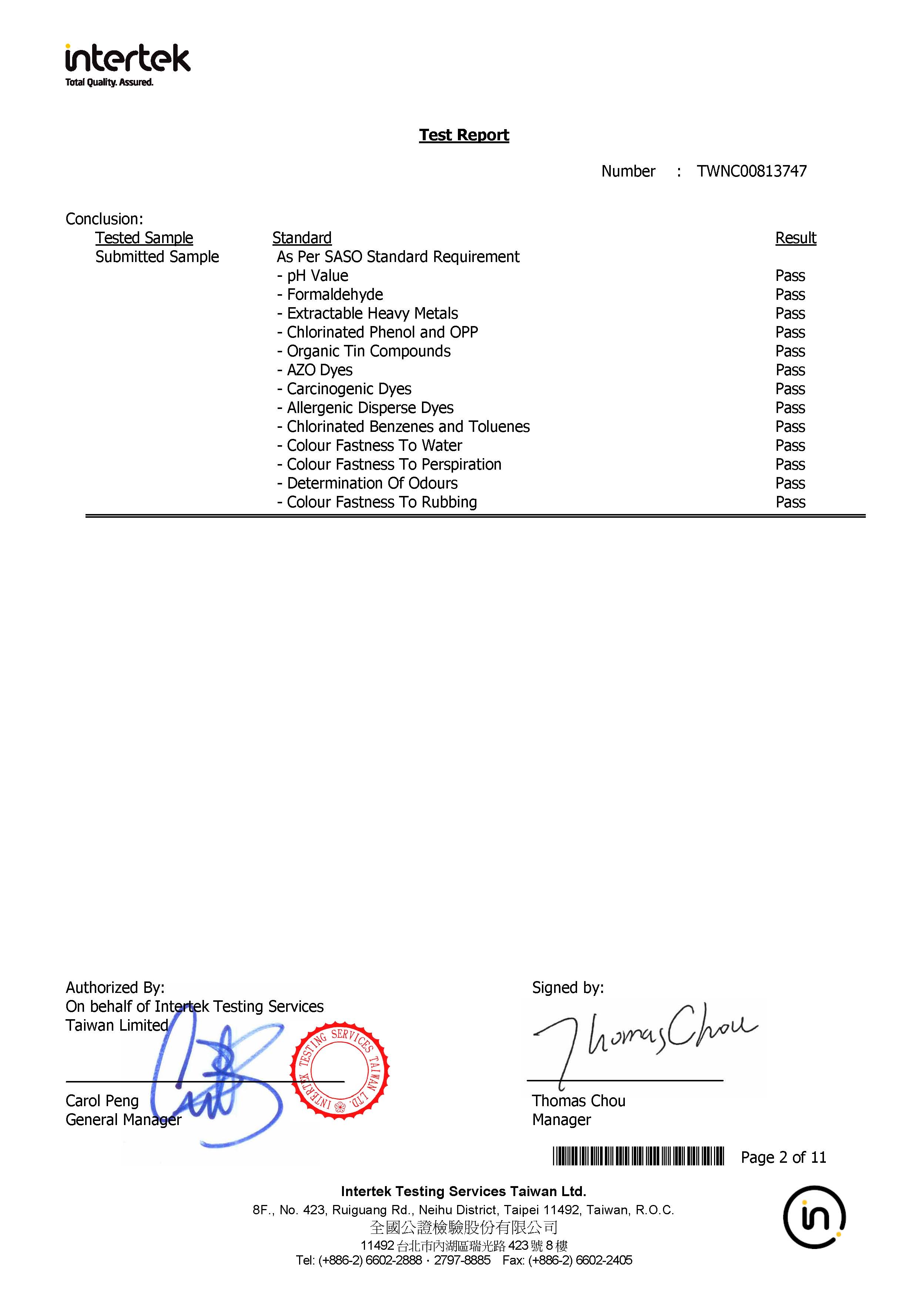 • Rapport d'essai pour SASO